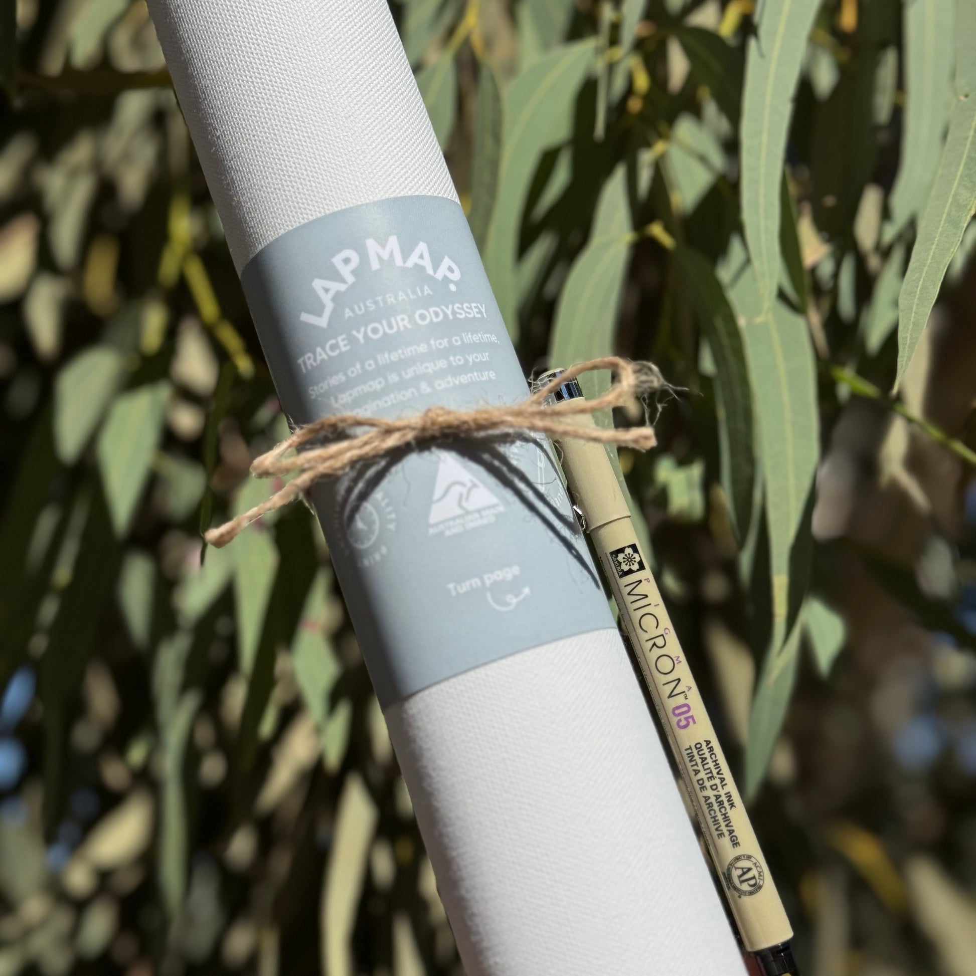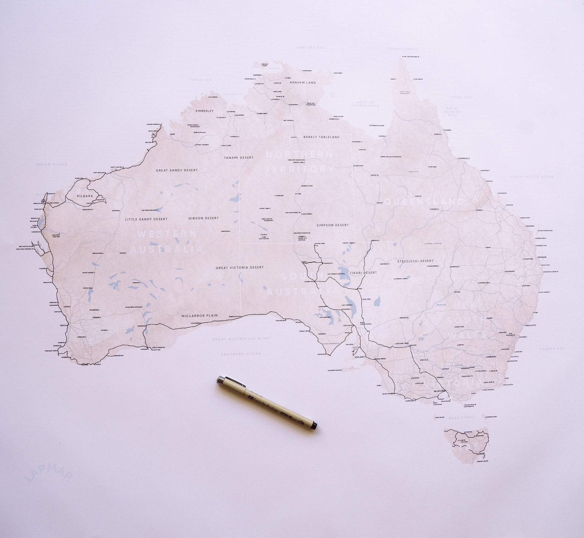 Australian Made Premium canvas map of Australia with a minimalistic design to show off your 'Lap' around Aus. Printed with museum grade UltraChrome inks accompanied by an archival Sakura Micron Pigma fine line permanent pen so you can 'Trace Your Odyssey' and tell your story for generations!